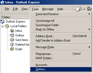 Näiden Outlook Express 6:sta olevien kuvakaappausten avulla yritän opastaa miten tarvittavat muutokset tehdään asetuksiin.