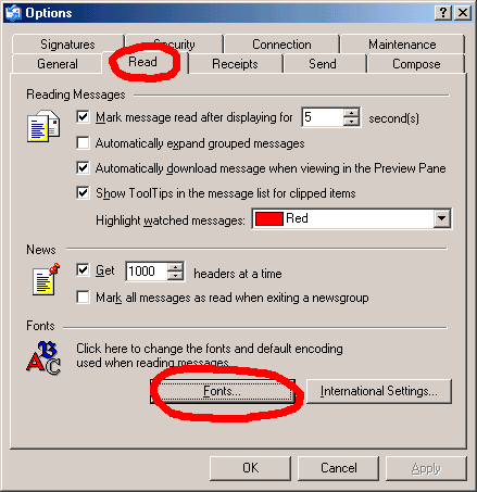 Outlook Express can't handle iso-8859-15 by default but we can configure it to be able to read and publish by using that character set. The ideal situation would be that by default OE would use US-ASCII and only if message contains any character with accent it would use iso-8859-1 and only if iso-8859-15 specific characters are used it would use that as a character set. Unfortunately that is not possible with OE so we have to configure it as a default character set. That may also cause some problems with other email clients but most of them default to iso-8859-1 if they can't handle iso-8859-15 properly and can display most messages properly.